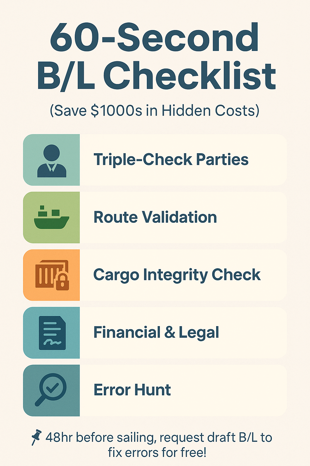 For logistics professionals, every B/L detail matters. Follow this rapid verification system: